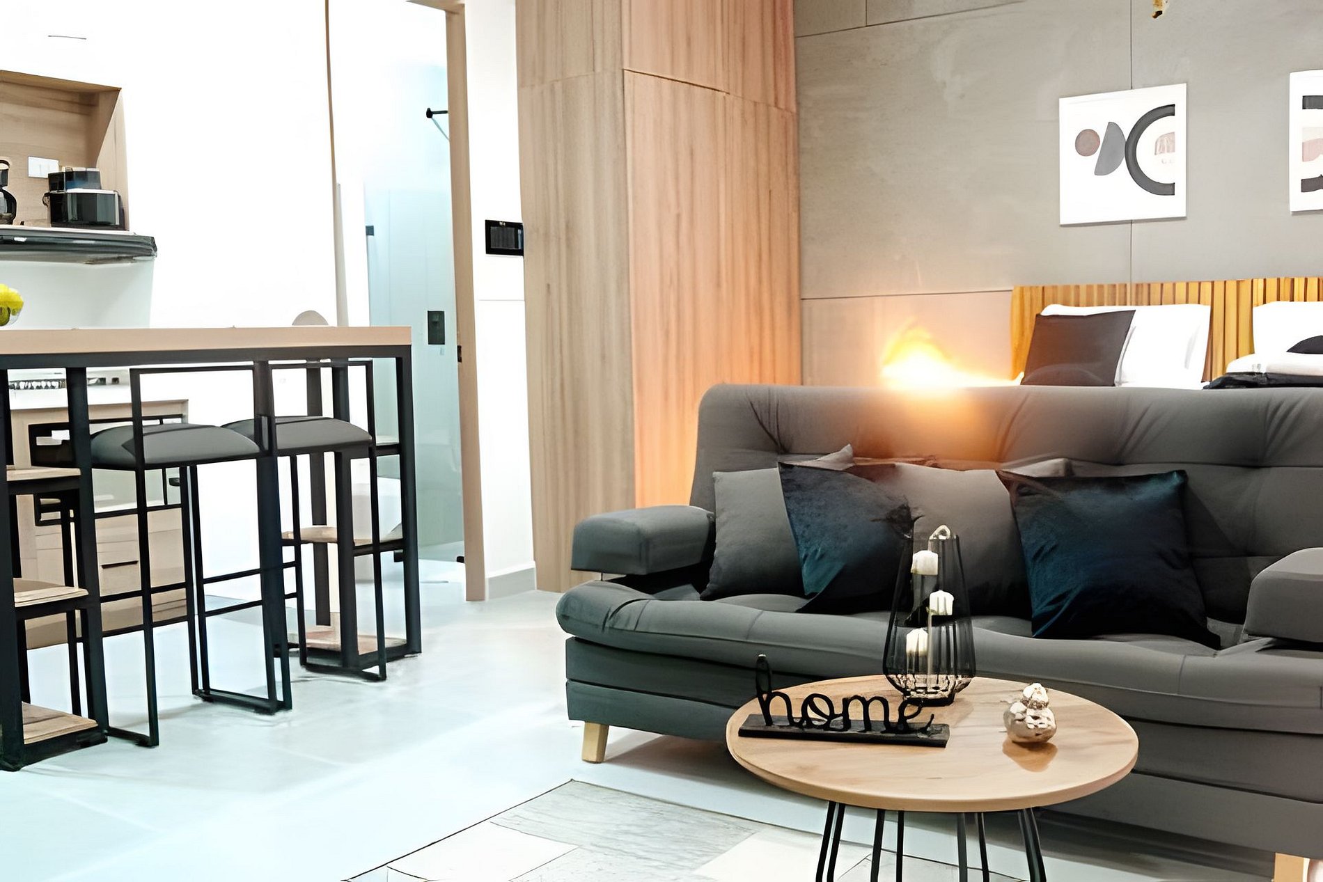 Cómodo y hermoso aparta estudio ubicado en un seguro edificio de 3 pisos,en piso 2 , tiene 1 habitación con cama de 1,80 cm, sala y cocina bien dotada , baño completo y barra americana , zona de lavado , grandes ventanales , aire acondicionado y zona de trabajo. Barrio tranquilo, seguro y central en la hermosa Medellín, puedes disfrutar de hermosos paisajes y un clima delicioso, disfrutarás de una hermosa propiedad nueva construida en 2023.