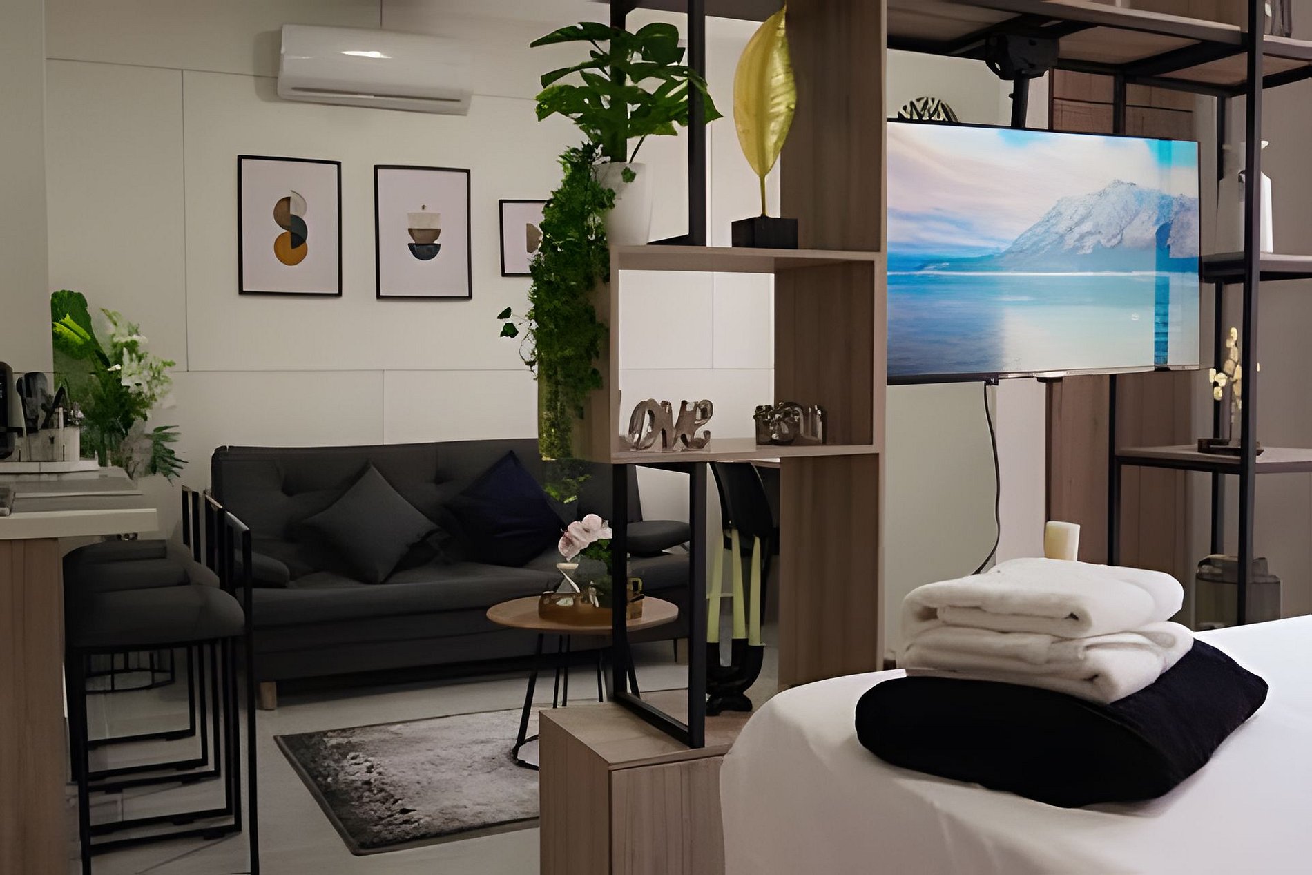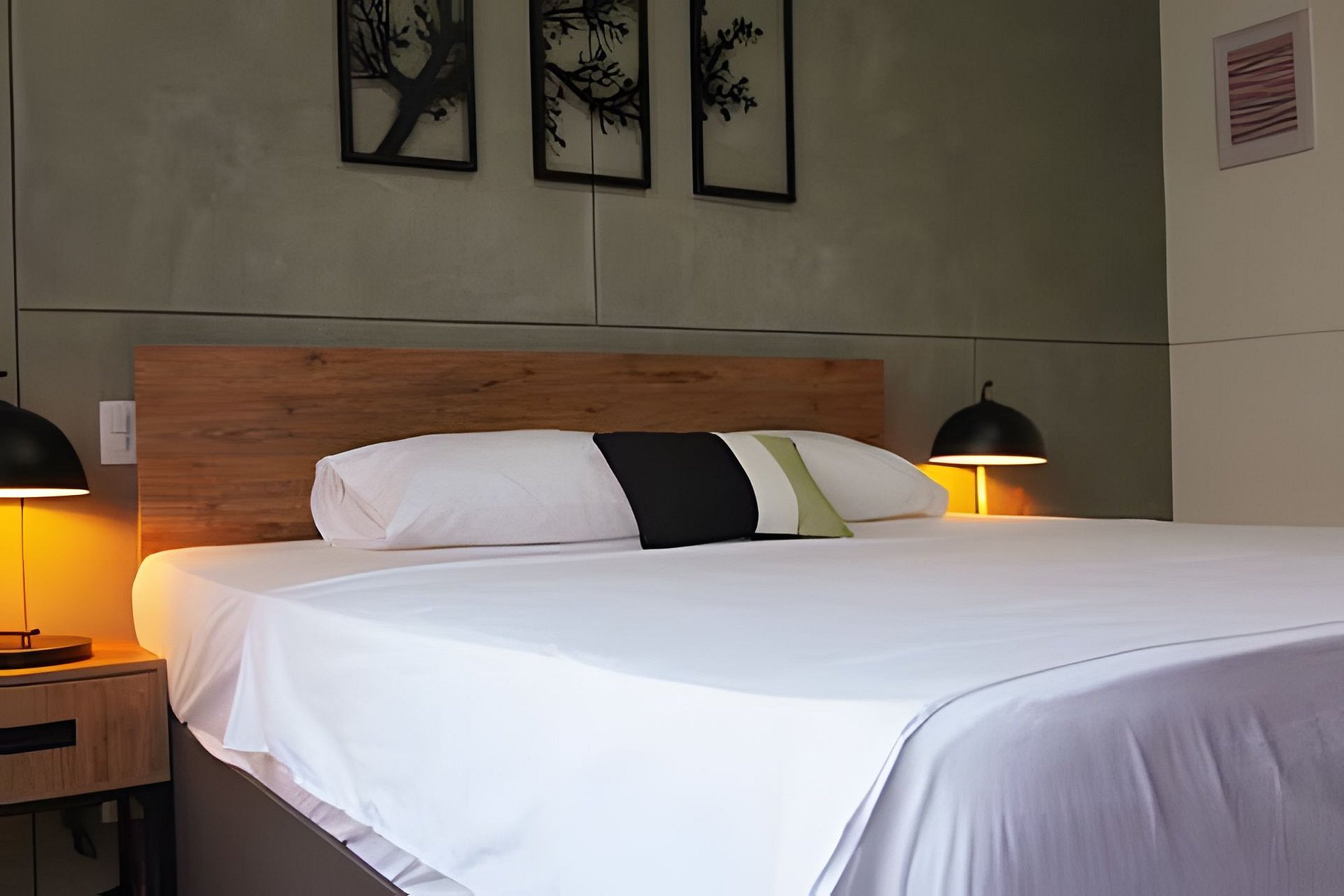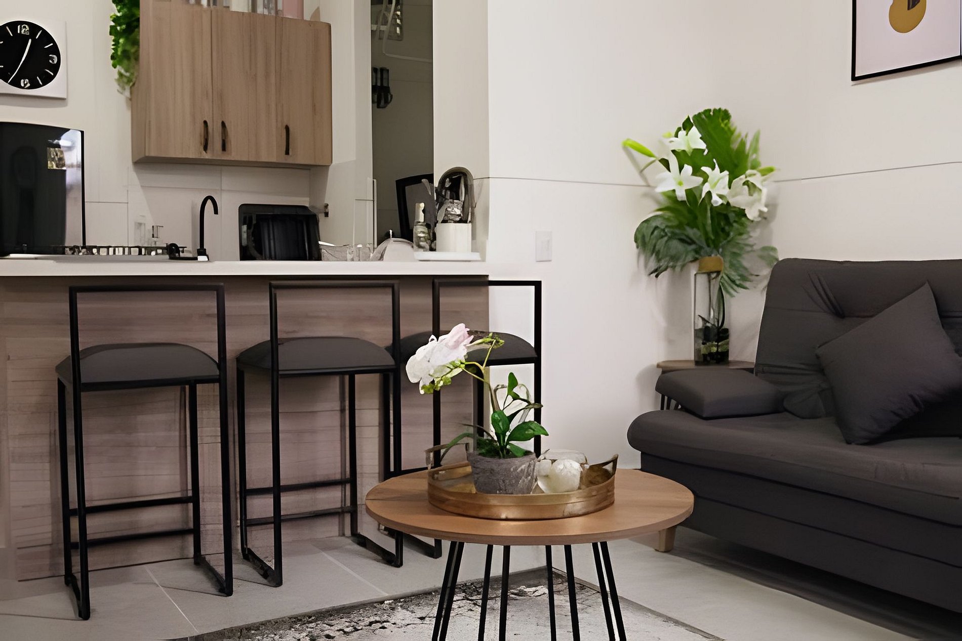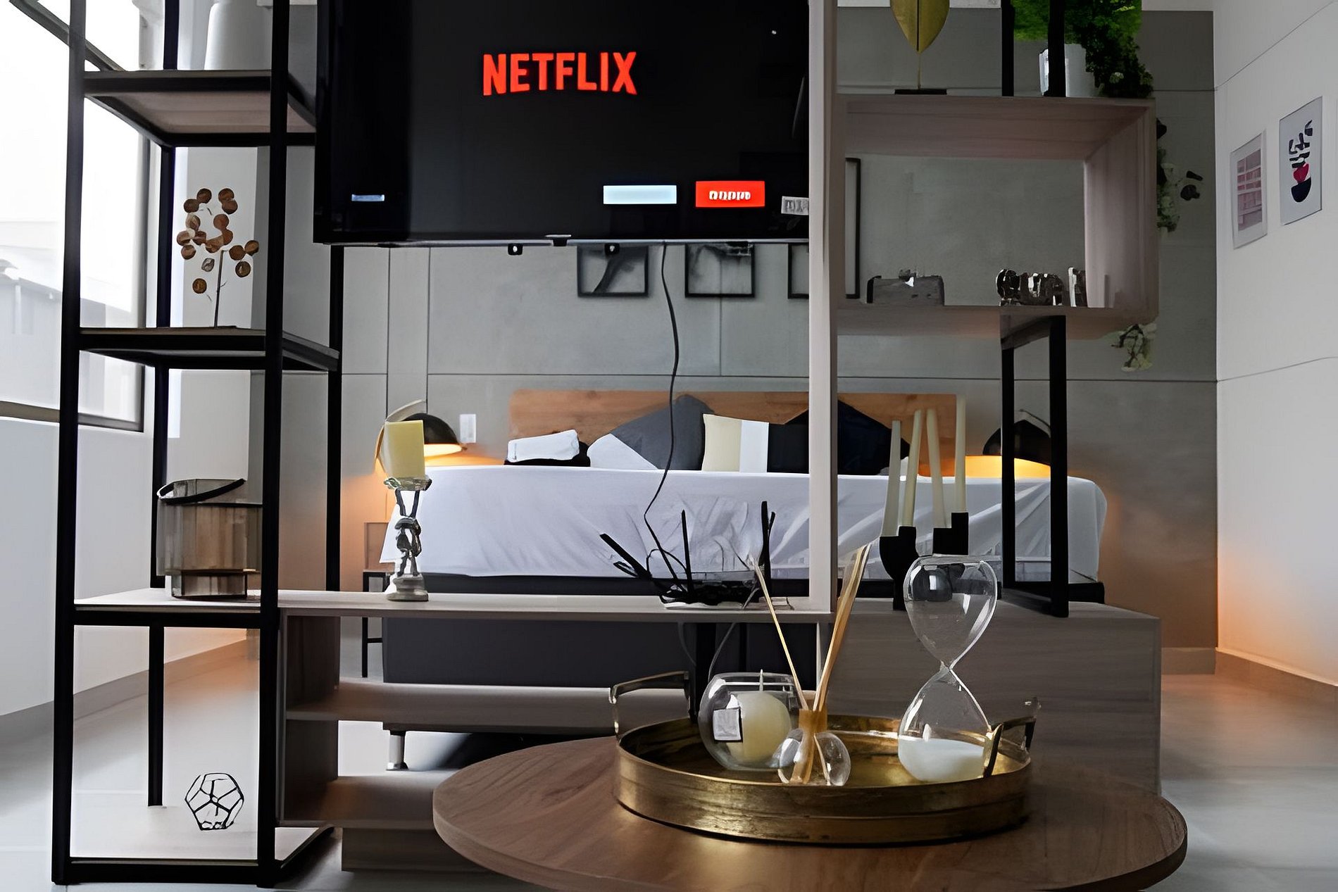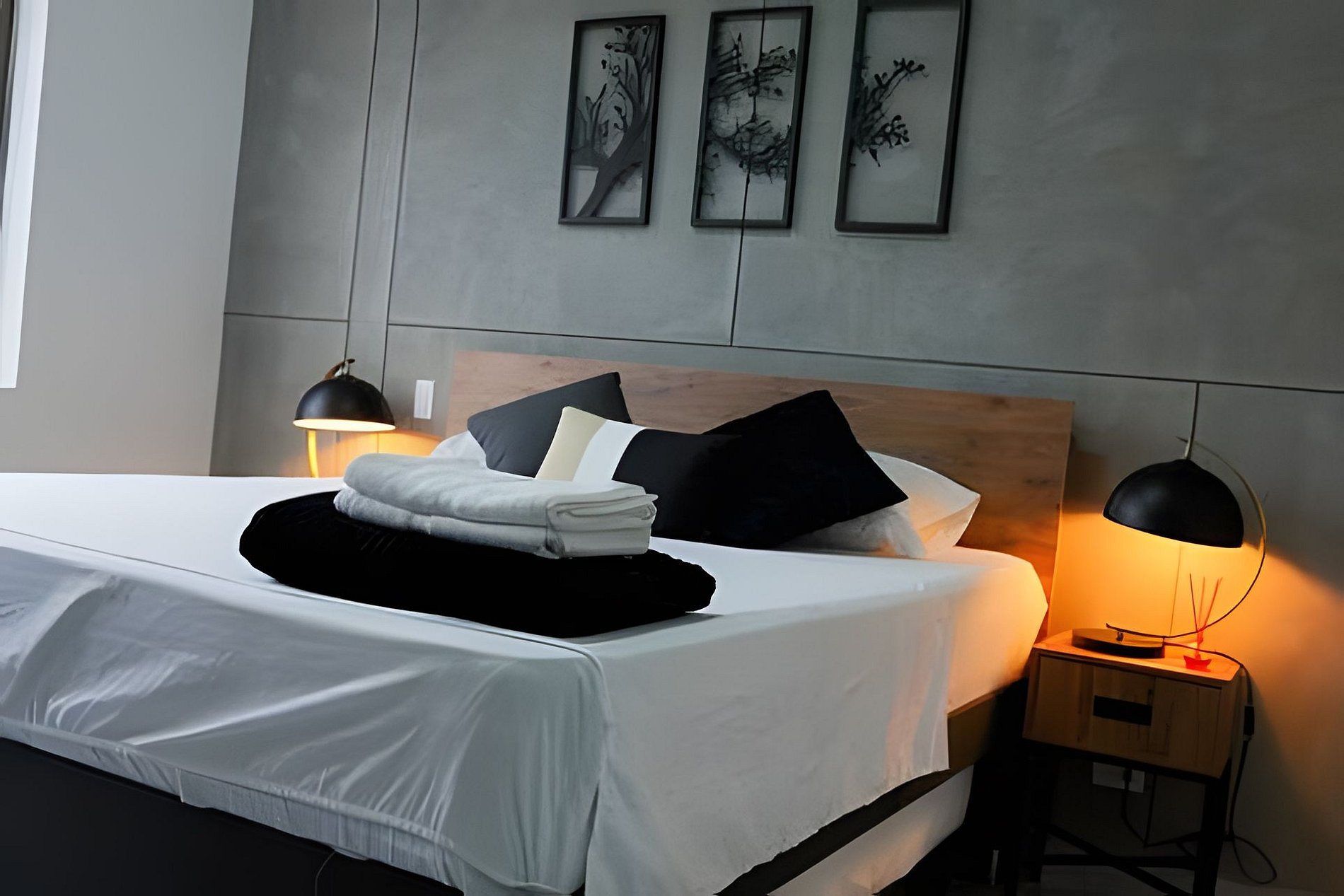 Este hermoso apartaloft tiene un hermosa división con tv que puedes girar y disfrutar la tv desde la comodidad de la cama, la barra americana o sofá ..