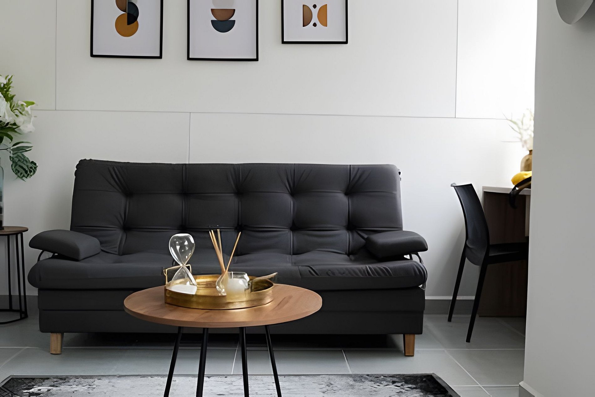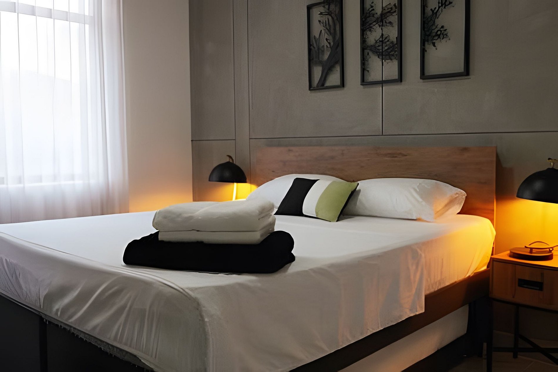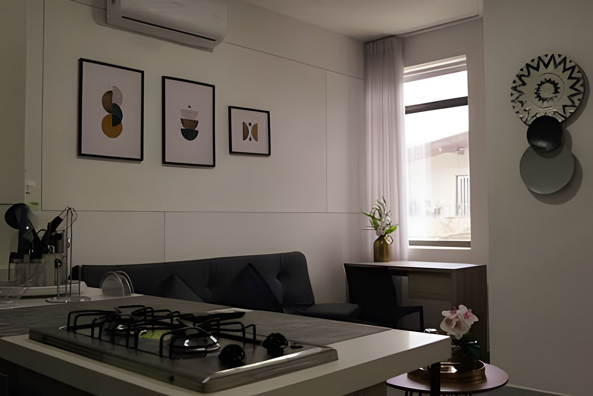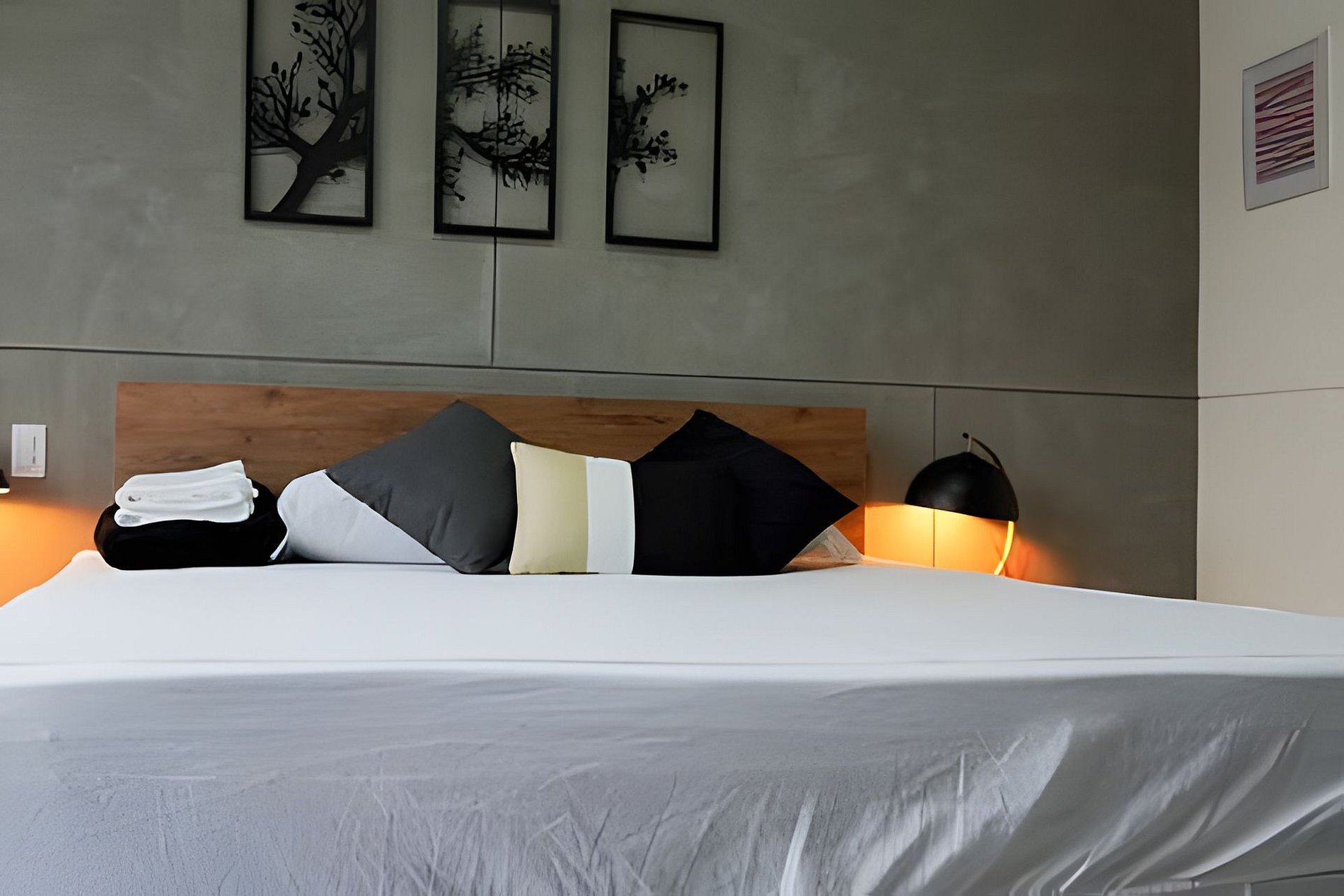 Este hermoso apartaloft tiene un hermosa división con tv que puedes girar y disfrutar la tv desde la comodidad de la cama, la barra americana o sofá ..