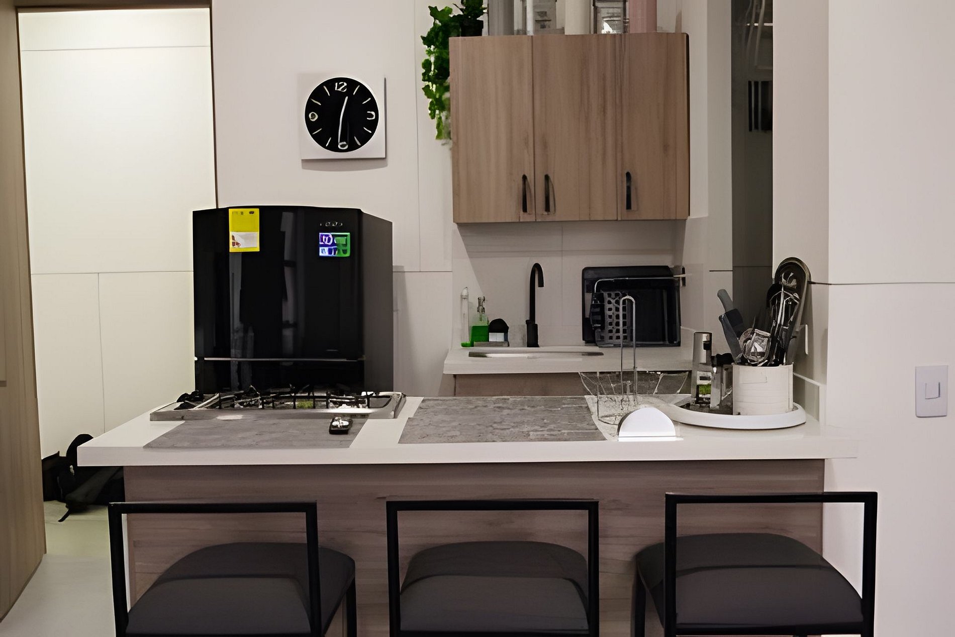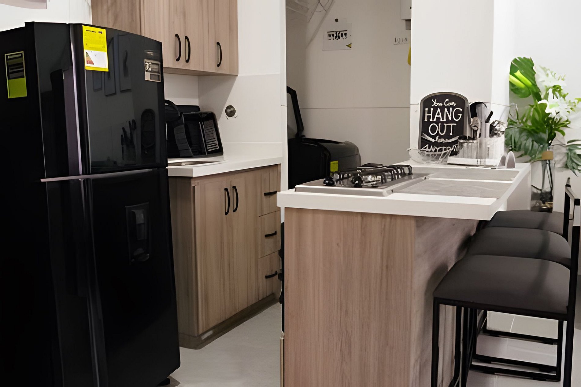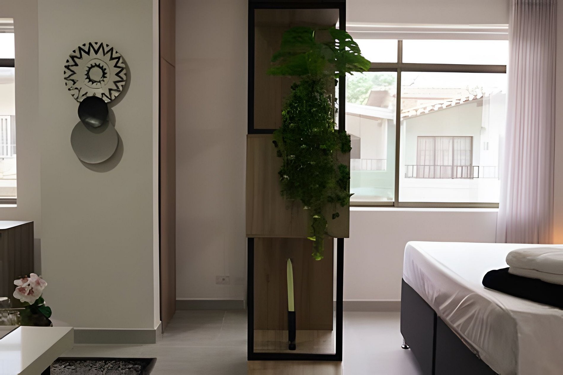 Cómodo y hermoso aparta estudio con aire acondicionado, ubicado en un seguro edificio de 3 pisos, en piso 2 , tiene 1 habitación con cama de 1,80 cm y cama tarima de 1.20 cm sala con sofá cama y cocina bien dotada , baño completo y barra americana , zona de lavado , grandes ventanales y zona de trabajo. Barrio tranquilo, seguro y central en la hermosa Medellín, puedes disfrutar de hermosos paisajes y un clima delicioso, disfrutarás de una hermosa propiedad nueva construida en 2024.